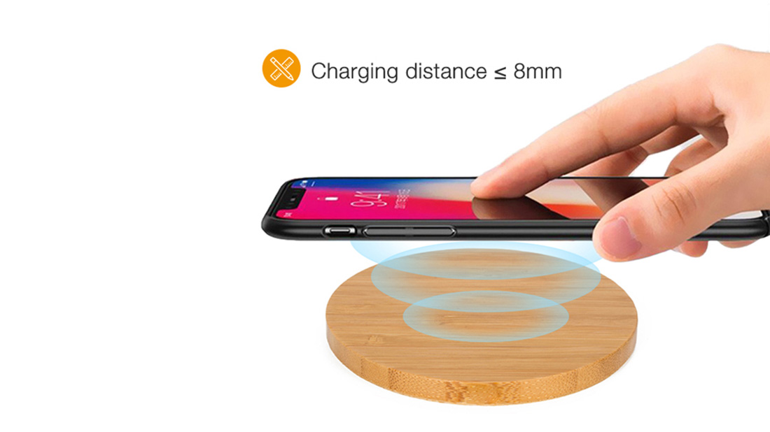 The Custom Wood Wireless Charger is made of real wood and it is compatible with all QI enabled devices like android latest generation, iPhone 8/8Plus/X/XS/XS Max/XR, Samsung Galaxy Note5/S6/S6 Edge/S6 Edge+/S7/S7 Edge/S8/S8+/S9/S9+/Note 9, Google Nexus 5/6/7, HTC Droid DNA, 8X, LG G3/G4, Lucid 2/3, Nokia Lumia 920/930 etc. It allows you to charge your smartphone without the cables, so you can charge your phone whenever you want, just by placing it on top. If want to charge an iPhone series before iPhone 8 with wireless technology, an external Custom Wood Wireless Charger receiver or receiver case is required. It works with most plastic phone cases on.