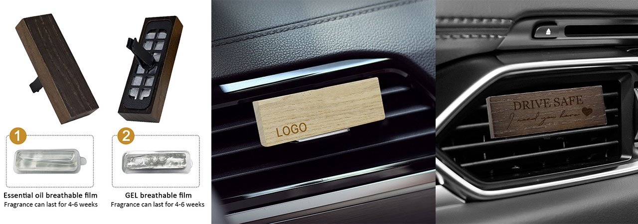 Experience a refreshing drive with our premium custom auto air fresheners, crafted from multiple types of high-quality wood. This best non-toxic car air freshener provides a long-lasting and chemical-free fragrance while adding a touch of elegance to your vehicle. The vent clip design ensures even scent distribution without overpowering your senses.