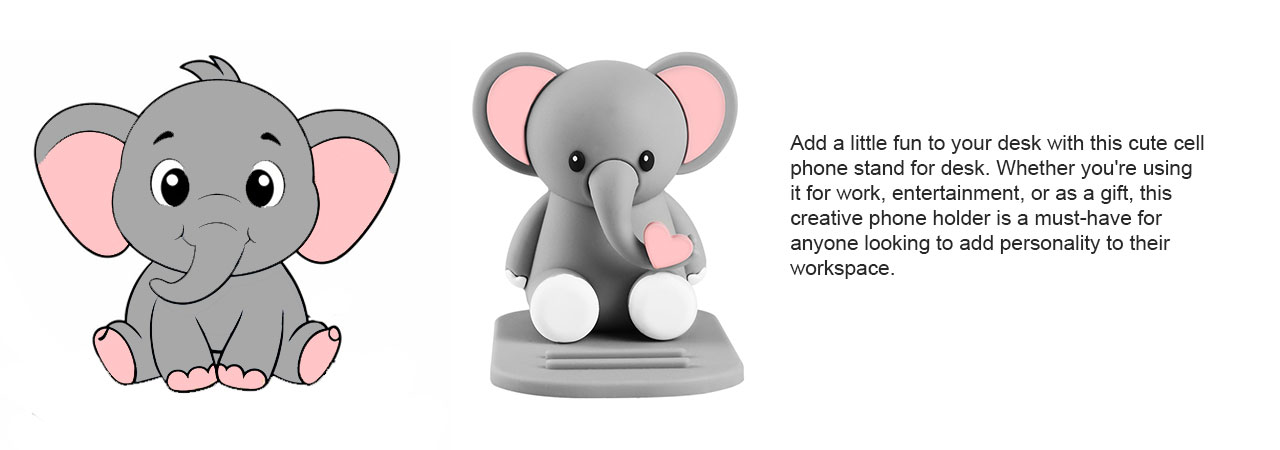 Bring charm and functionality to your desk with this cute phone stand. The custom made phone holder features an adorable elephant design that is both fun and practical. Whether for your home office or as a gift, this cute phone holder for desk will add personality and usefulness to any space. Order now and make your desk a more cheerful and organized place!