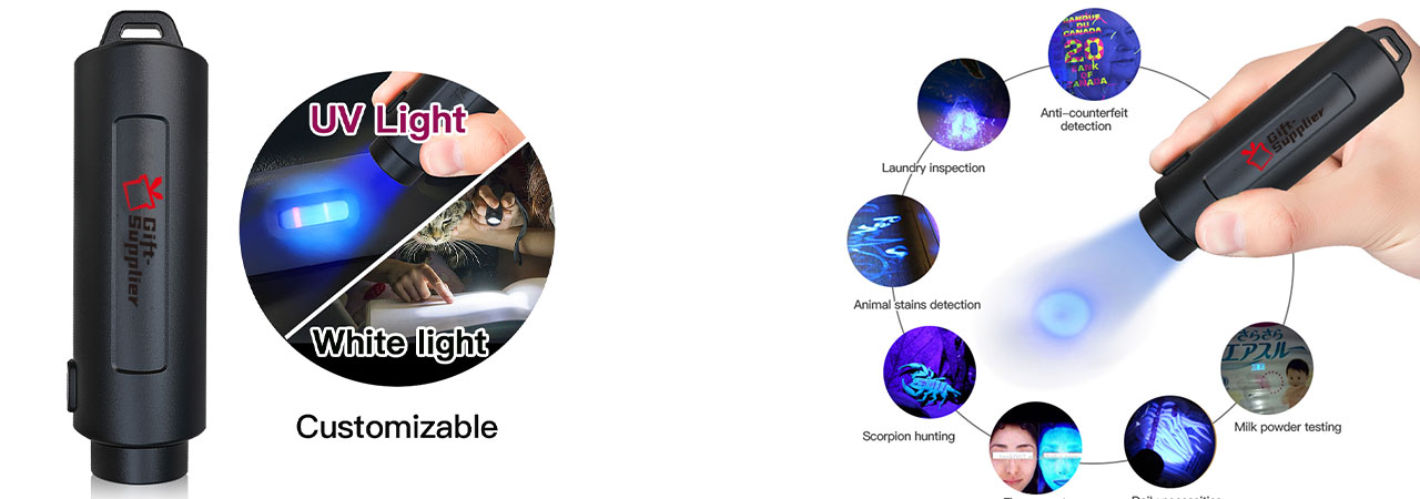 Get the best of both worlds with our personalized keychain flashlight featuring UV capabilities, a rechargeable mini flashlight design, and one of the strongest small flashlights on the market. Perfect for EDC, UV curing, or promotional use, this compact yet powerful tool can be customized with your logo. Order now and bring light to your brand!