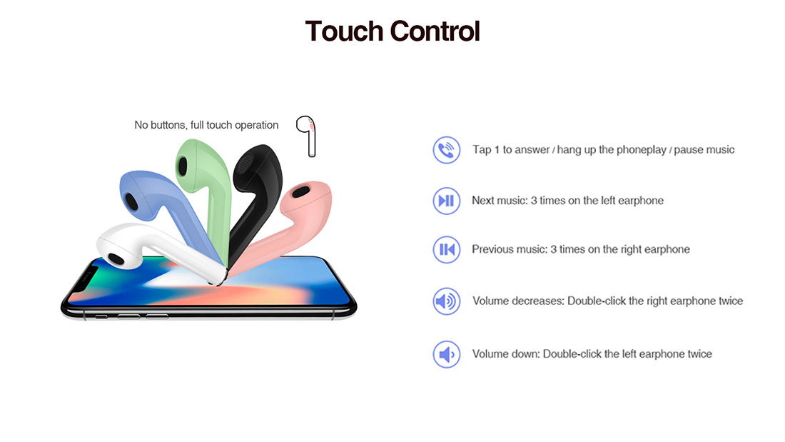 Comfort and Secure Fit- The I10 touch earbuds are ergonomically designed and fit seamlessly with your ears even during intense workouts. Feeling invisible, zero discomfort or pain even if you have worn them for the whole day.