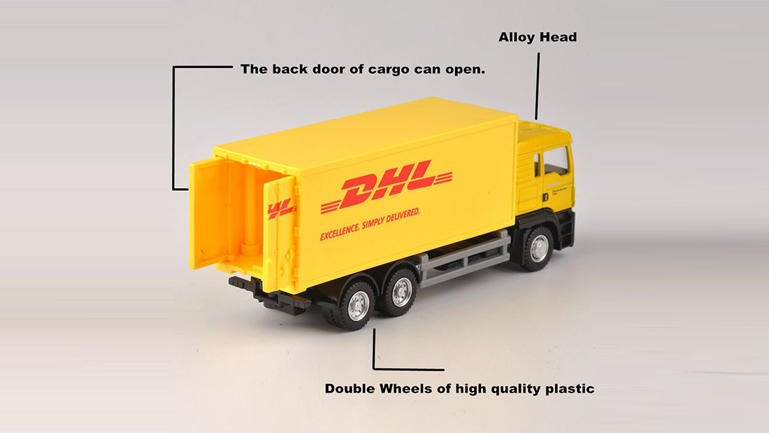 wholesale dhl toy truck The DHL toy truck is beautifully made with exquisite details. The DHL truck toys are also perfect to be the wholesale business gifts. It's great for the model fans collection and an amazing gift for kids.